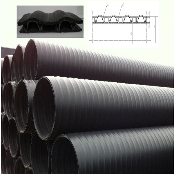 遂寧中空壁塑鋼纏繞聚乙烯管道是以中空聚乙烯(PE)板帶為基體,用“Ω”形狀的鋼骨架為主要支撐結(jié)構(gòu),生產(chǎn)管道鋼骨架原材料為鍍鋅鋼帶,采用纏繞成型工藝,經(jīng)加工制成內(nèi)壁平直光滑,外壁呈波紋狀的中空壁塑鋼纏繞聚乙烯管道(簡稱:“HWPSP”管道)